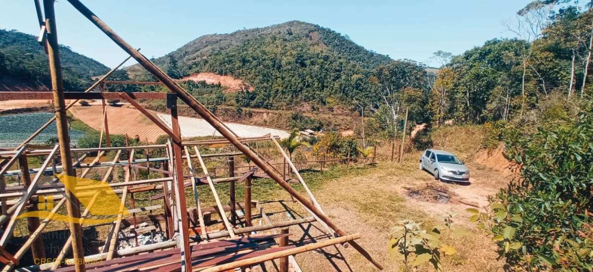 Terreno medindo 80x25 com platô de 300mts² pronto para construir, estrutura em madeira já iniciada, metade do terreno cercado.