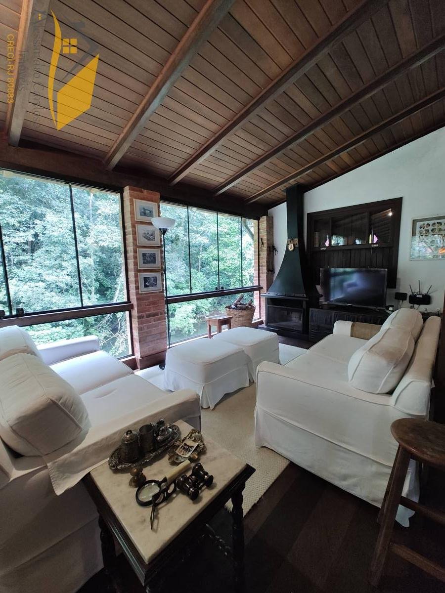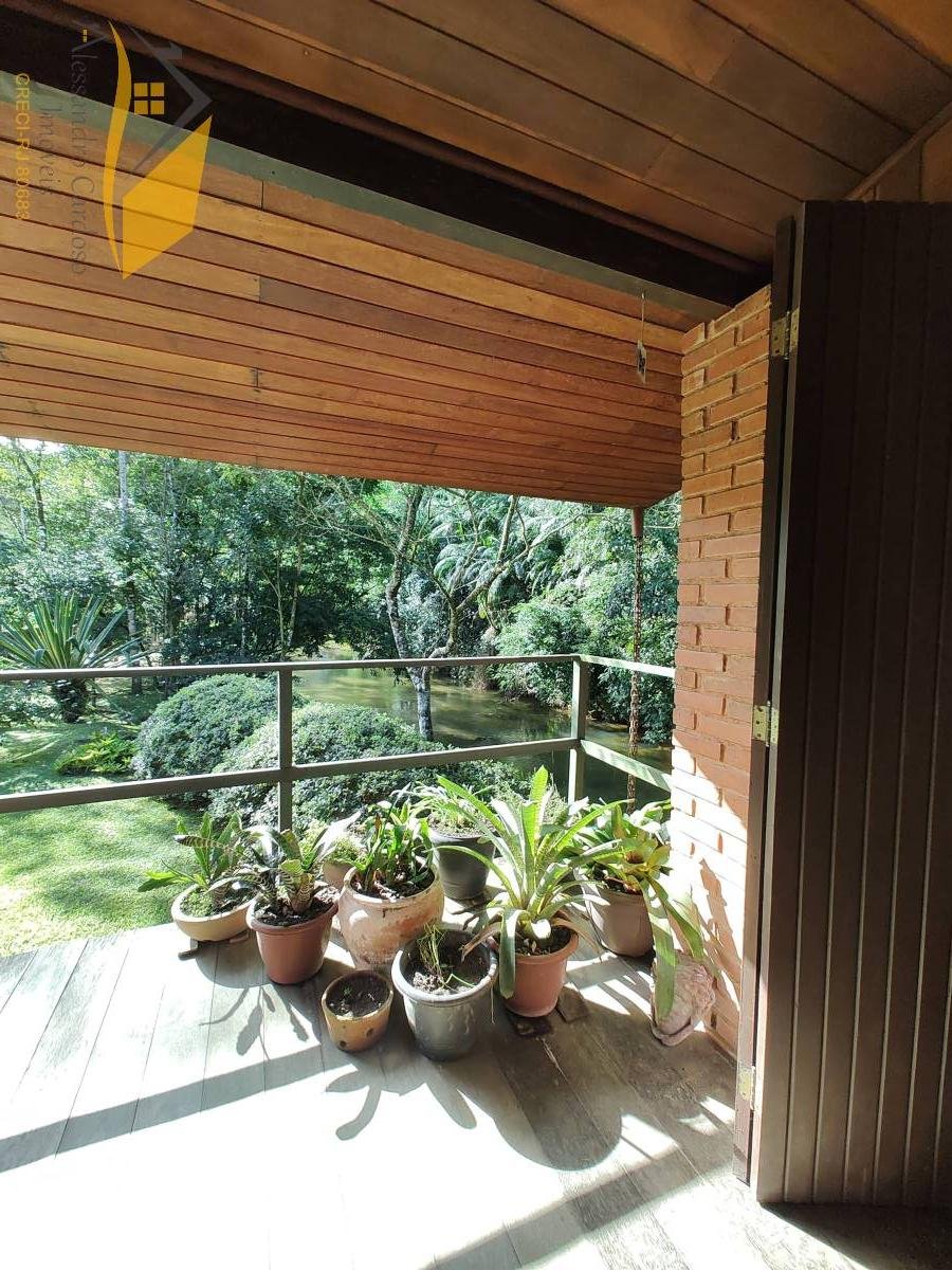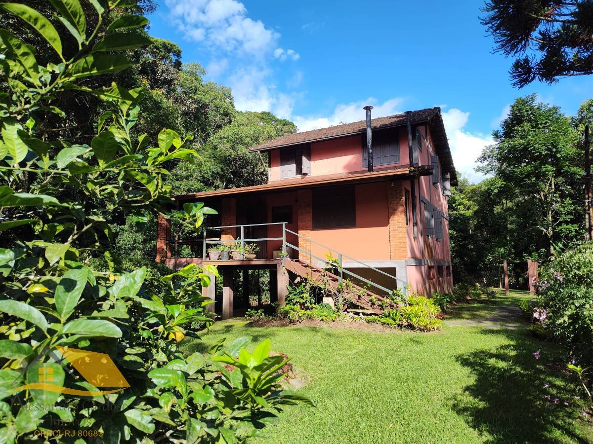 Vendo linda chácara em Rio Bonito de Lumiar. A propriedade tem 3900 mts² de terreno, duas casas, sendo a primeira com 2 suítes no segundo andar, no primeiro andar um quarto, sala de janta e de estar, banheiro social, cozinha e varanda. A segunda casa conta com 2 quartos, sala, cozinha e banheiro. As duas casas com lareira e a casa sede com fogão a lenha e forno a lenha para pizza. O belo jardim é cortado por um rio de aguas cristalinas e próprio para banho, além disso o imóvel fica a apenas 5 min a pé da principal cachoeira de Rio Bonito, a Cachoeira do Roncador. Possui RGI do terreno.