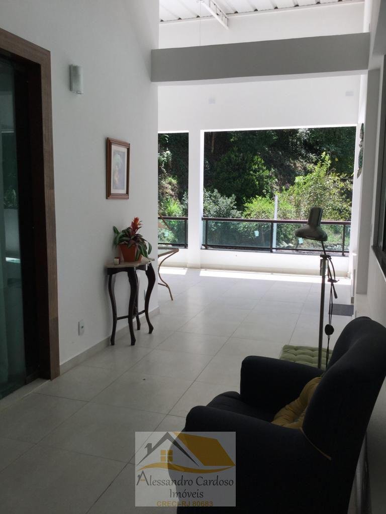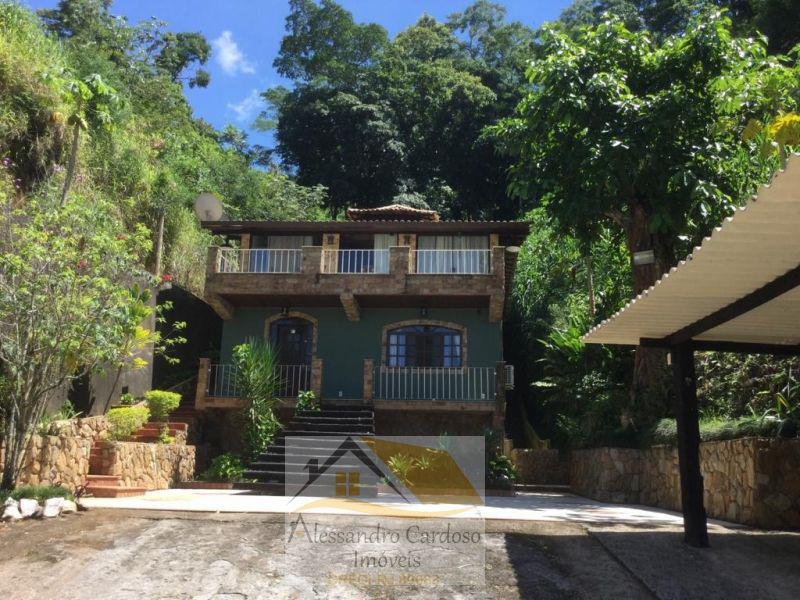 Circundada pela mata Atlântica, a casa se reveste de uma literal privacidade, além de contar com uma piscina e área de lazer, varanda gourmet e um pátio imenso que permite até mesmo a instalação de um heliponto.